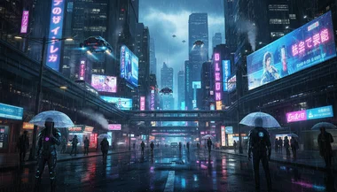 - Cyberpunk CityscapesNeon lights, futuristic buildings, and dystopian skylines.