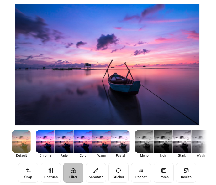 SharkFoto ImageEditor, a powerful and easy free online photo editor, including crop, flip, rotation, drawing, shape, icon, text, mask filter, image filter and more. Try our easy online photo editor for free, now!